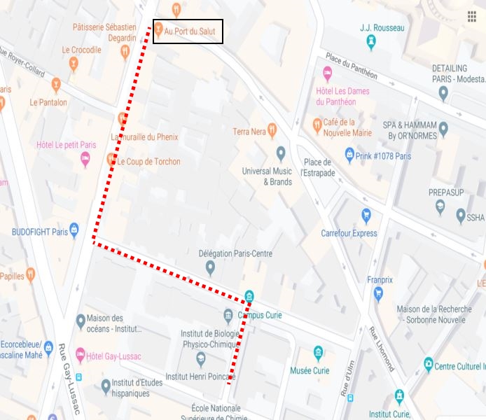 Attention. En raison des travaux à l'IHP les pauses café auront lieu au restaurant "au port du Salut", 163 bis rue Saint-Jacques, à 4 minutes à pied de l'IHP, voir le plan.