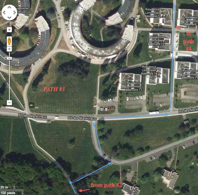 Here is a general acces map, followed by zooms on the different parts of the path.