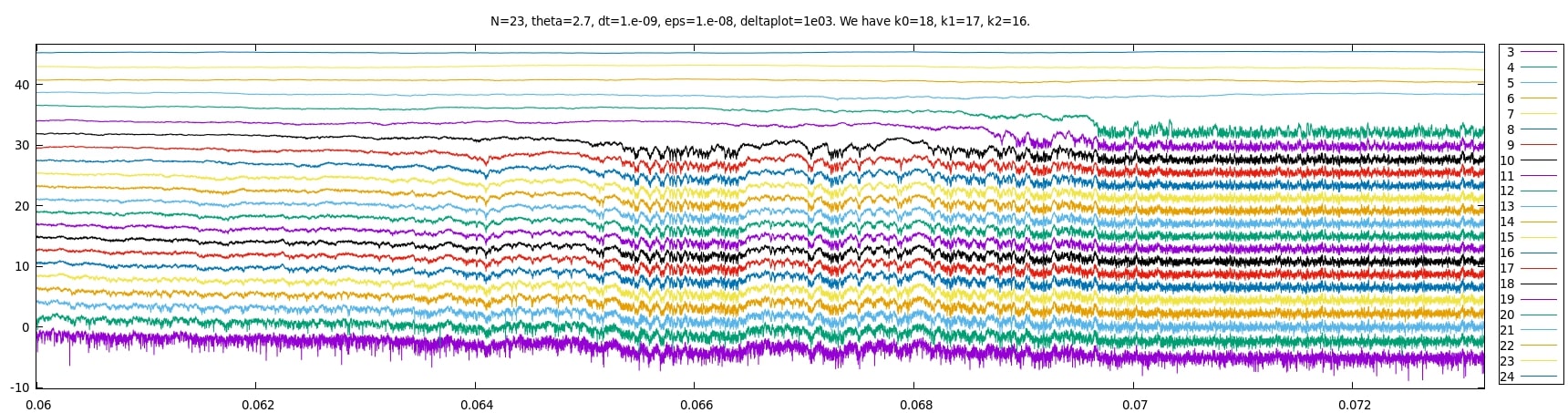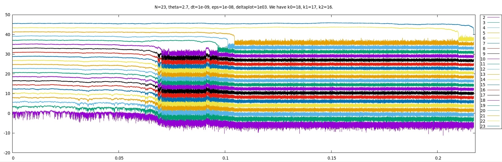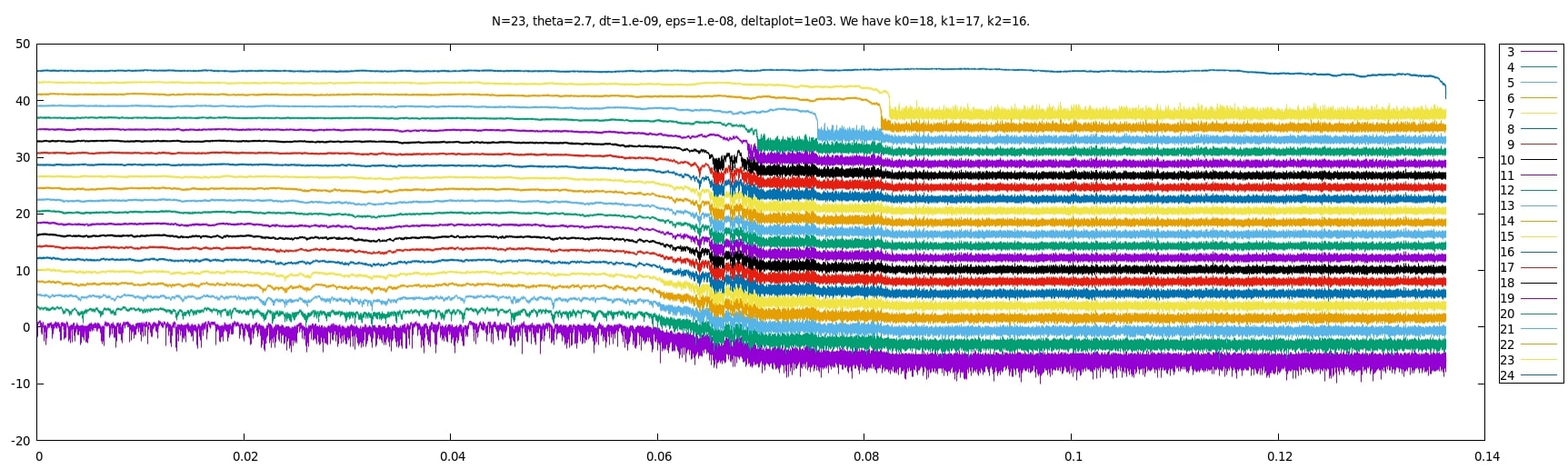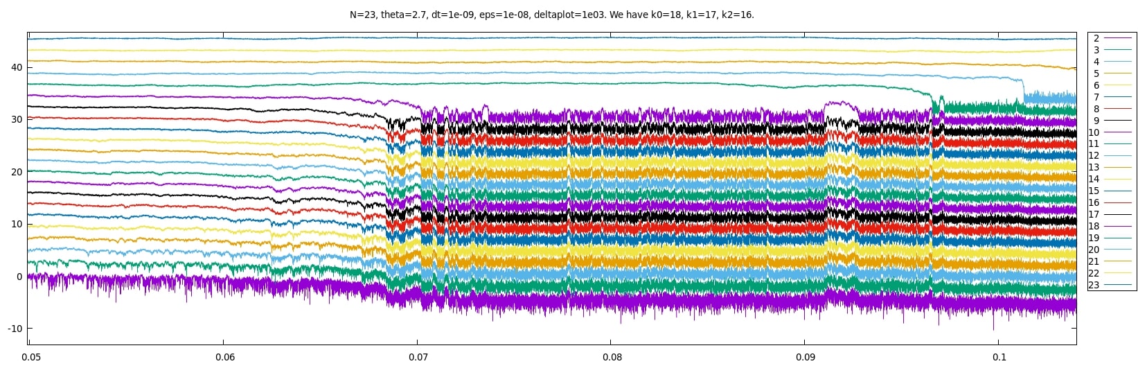 using gnuplot, 2i+log10 Z[i] as a function of time, for i=2,...,23. We add 2i only to